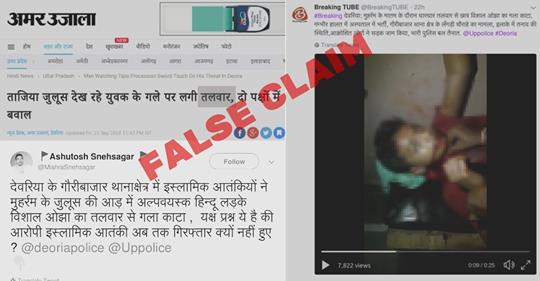 एक अन्य ट्विटर उपयोगकर्ता पूजा सिंह ने ब्रेकिंग ट्यूब का लेख शेयर किया, जिसमें कहा गया था, “देवरिया में #मुहर्रम उत्सव के दौरान 6ठी कक्षा के छात्र विशाल ओझा का गला किसी अतिवादी द्वारा काट दिया गया था। उसकी हालत अभी गंभीर है। काफिरों के गले को काटकर ये लोग अपना त्यौहार मनाते हैं। फिर भी हिंदुओं के त्यौहार खतरनाक हैं।”कई अन्य यूजर्स ने भी यह दावा ट्वीट किया है कि लड़के को तलवार से चोट पहुंची थी (1,2,3,4)।