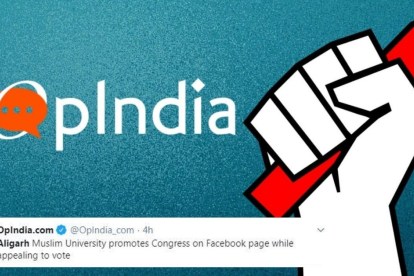 11 अप्रैल को दक्षिणपंथी वैबसाइट ओपइंडिया  ने “अलीगढ़ मुस्लिम विश्वविद्यालय ने फेसबुक पेज पर वोट की अपील करते हुए कांग्रेस का प्रचार किया” -(अनुवाद) शीर्षक से एक लेख प्रकाशित किया।
