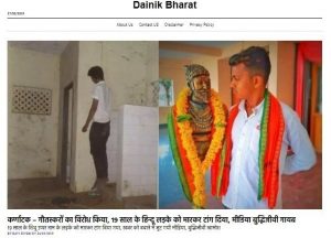 इस संदेश को फेसबुक पेज जस्टिस फॉर हिंदुस ने साझा किया है। फेक न्यूज़ वेबसाइट दैनिक भारत ने भी इस घटना को लेकर एक लेख प्रकाशित किया है, जिसके मुताबिक उप्पर की हत्या गौतस्करों ने की है।