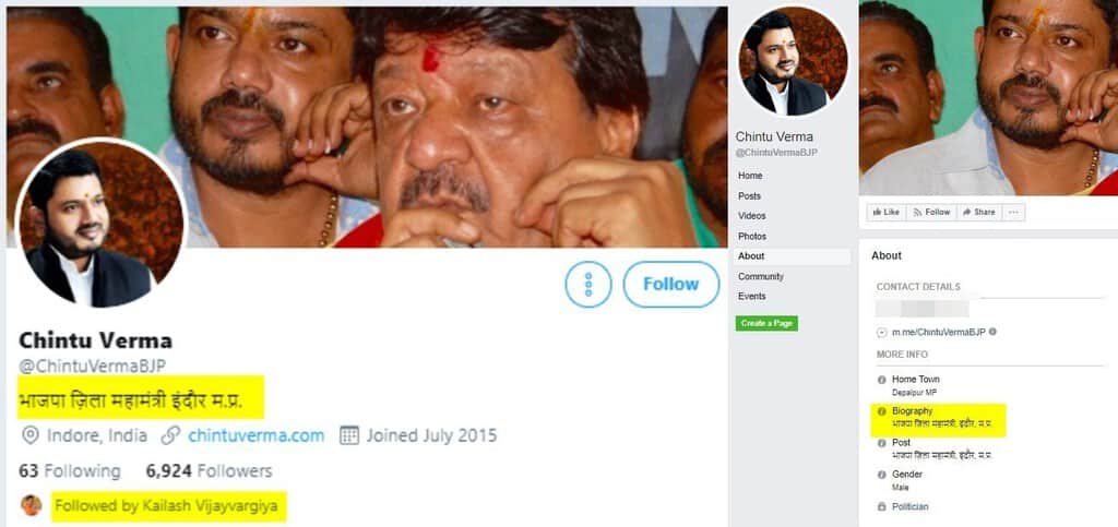 चिंटू वर्मा, नाम के ट्विटर यूज़र जिसे भाजपा के राष्ट्रिय महासचिव कैलाश विजयवर्गीय फॉलो करते हैं, उन्होंने 13 जून को एक वीडियो साझा किया, जिसमें कुछ बच्चों को एक कतार में चलते हुए देखा जा सकता है। अपने फेसबुक और ट्विटर प्रोफाइल के परिचय में वर्मा ने दावा किया है कि वह,“भाजपा इंदौर के महामंत्री” है।