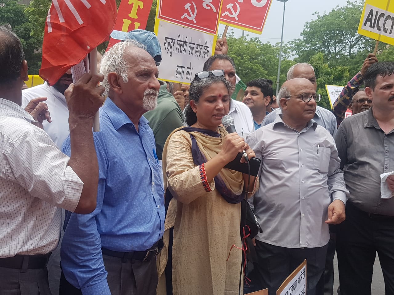 सीआईटीयू की राष्ट्रीय सचिव सिंधू ने कहा कि सरकार हमारे जनवादी अधिकार छिन रही है. उन्होंने कहा, “मोदी सरकार श्रम कानून के भीतर छेड़खानी नहीं कर रही है बल्कि श्रम कानूनों का कत्ल कर रही है. जिसके ख़िलाफ़ हम प्रदर्शन कर रहे हैं. हमने आजतक मजदूरों और उनके परिवारों के हक के लिए जो कुछ लड़कर हासिल किया है ये सरकार एक झटके में उसे खत्म करना चाहती है. सरकार ने सत्ता में वापसी करते ही श्रम कानून को खत्म करने की साजिश की है. उसे टुकड़ों में बांट दिया है.”