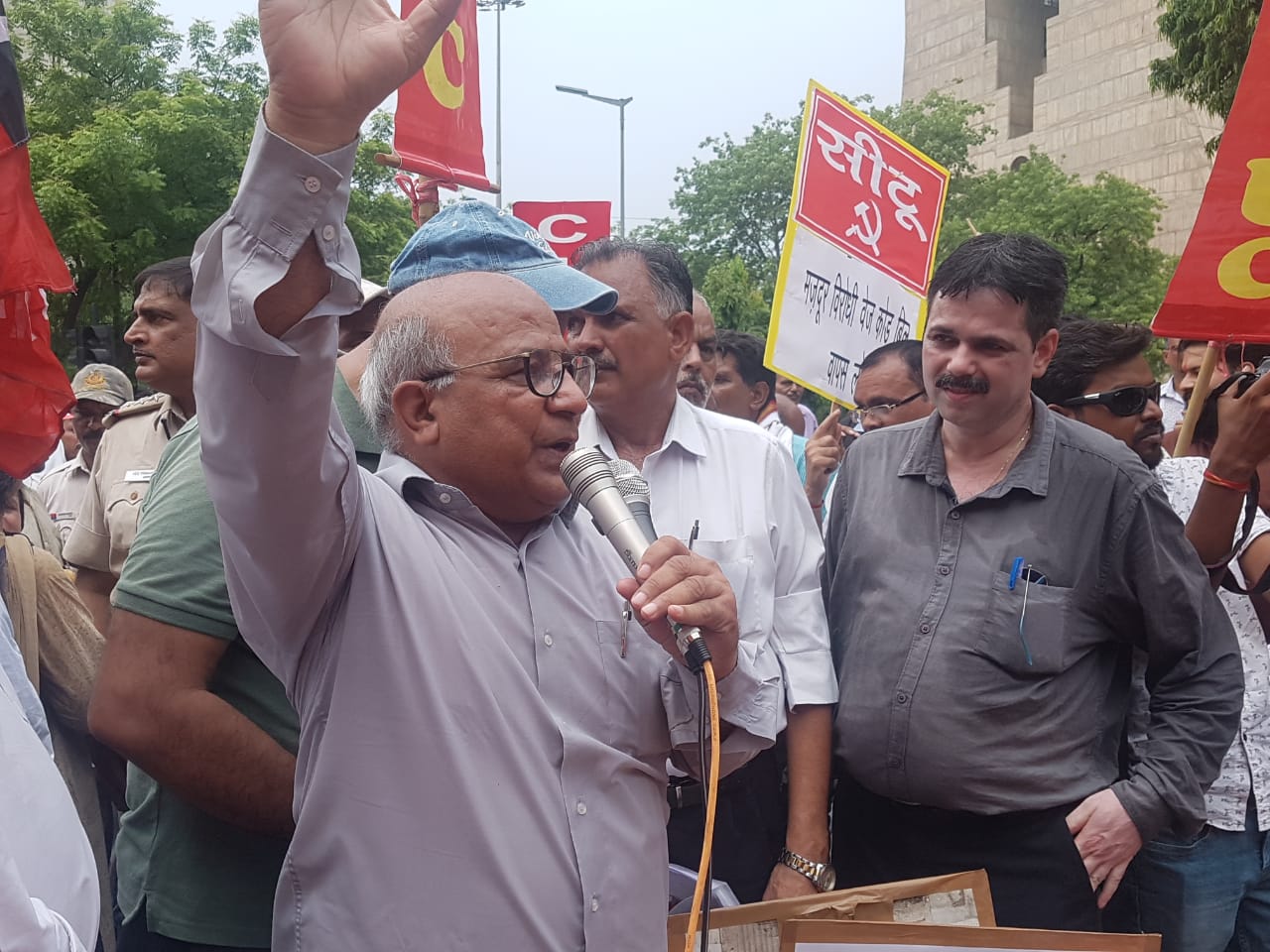 उन्होंने कहा, “आज देश का मजदूर और श्रमिक मर रहा है, किसान आत्महत्या कर रहा है, नौजवान बेरोज़गार है. लेकिन सरकार पूंजीवादी व्यवस्था को बढ़ावा देने में लगी है. सरकार हर संस्थान को खरीदना चाहती है. हिटलर पीएम मोदी का आर्दश है. सरकार ने मजदूर के काम, न्यूनतम वेतन और उसके श्रम अधिकारों पर हमला किया है. लेकिन मजूदर इसके ख़िलाफ़ आवाज उठाते रहेंगे.”