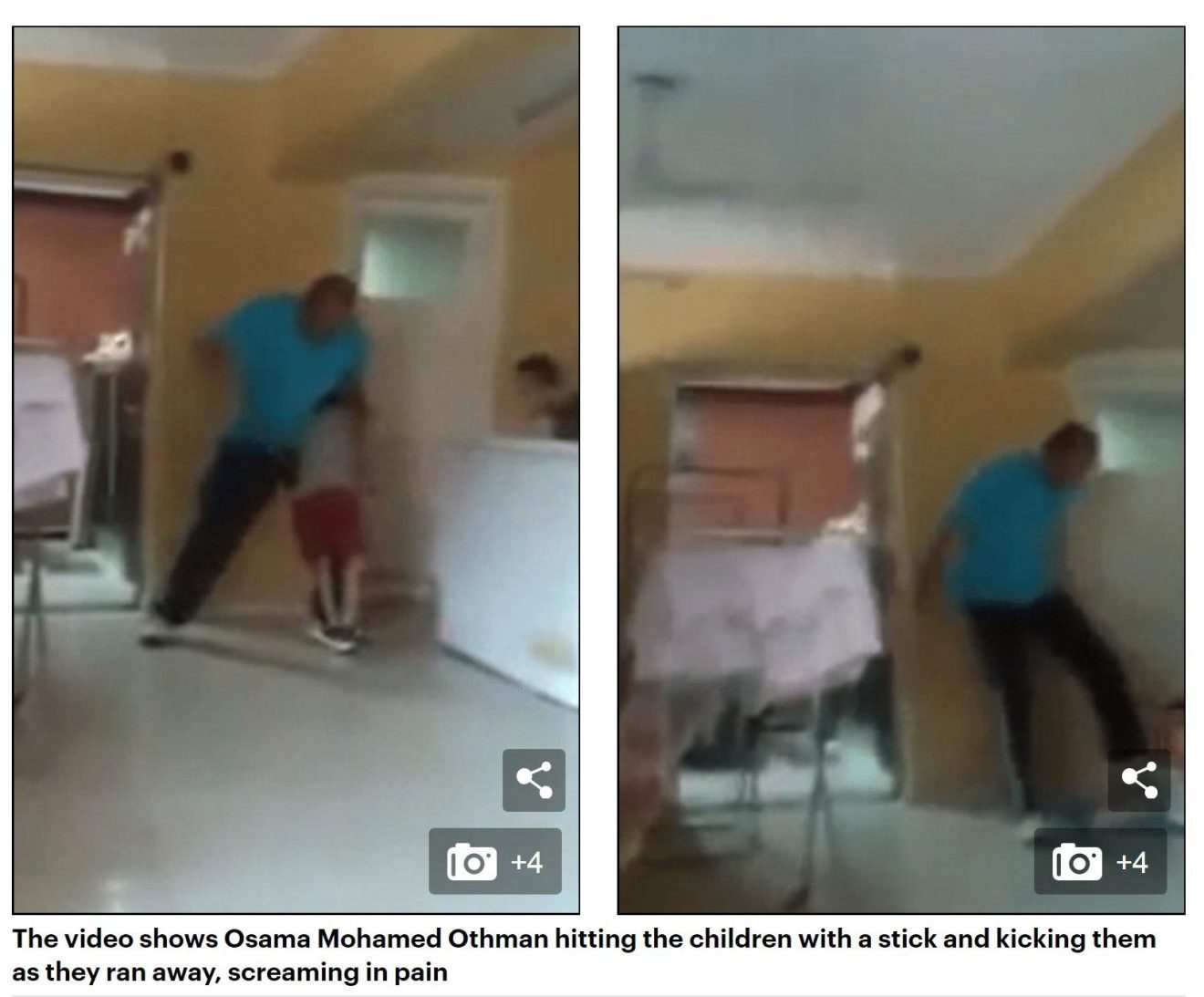 5 अगस्त, 2014 के डेली मेल द्वारा प्रकाशित एक लेख के मुताबिक,“वीडियो में दिख रहा है ओसामा मोहम्मद ओथमैन बच्चों को पैर से मारते हैं और बच्चे उस वक़्त दर्द से चीख उठते है और वहां से भाग जाते हैं। राज्य द्वारा संचालित अल-अहराम अखबार ने बताया कि ओथमान की पत्नी ने दो महीने पहले गीज़ा में डार मक्का अल-मोकरमा अनाथालय में यह वीडियो लिया था”-(अनुवाद)।