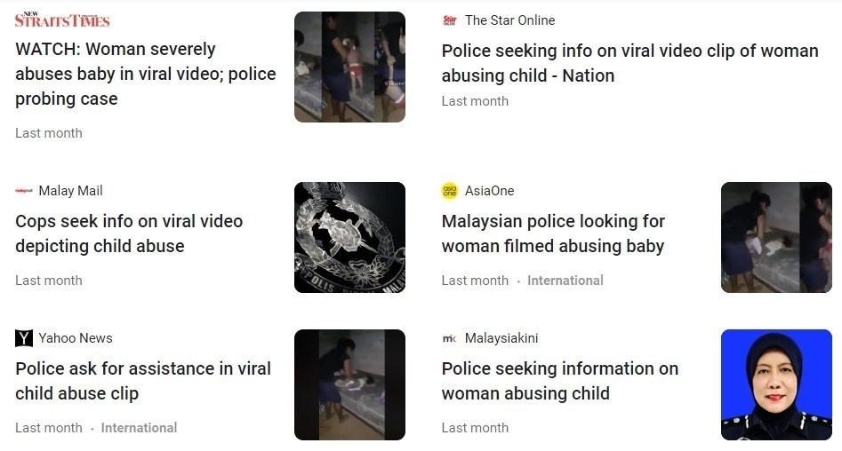 न्यू स्ट्रेट्स टाइम्स (New Straits Times) के लेख के मुताबिक, जो मलेशिया में प्रकाशित एक अंग्रेजी समाचारपत्र है, यह वीडियो वायरल हुआ था और माना जा रहा था कि यह वीडियो मलेशिया में लिया गया था। रिपोर्ट में कहा गया है कि पुलिस इस मामले की जांच कर रही है और उन्होंने आग्रह किया है कि अगर किसी के पास इस वीडियो की जानकारी है तो वह आगे आकर इसकी जांच में सहायता कर सकता है। यह लेख 12 जून, 2019 को प्रकाशित किया गया है।