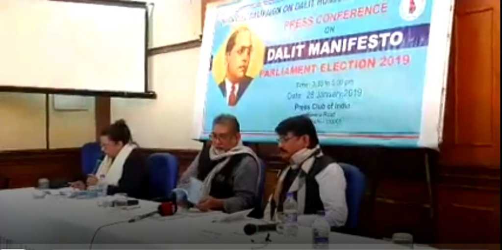 आगामी लोकसभा चुनाव दलितों के असल मुद्दों पर लड़ा जाए इसके लिए ‘राष्ट्रीय दलित मानवाधिकार अभियान’  ने सोमवार को प्रेस कॉन्फ्रेंस कर ‘दलित घोषणापत्र’ जारी किया. इस घोषणा पत्र में 12 विषयगत मांगों का शामिल किया गया, जिसमें दलित समाज के लिए वास्तविक लोकतंत्र के साथ-साथ सामाजिक आर्थिक न्याय की मांग की गई.