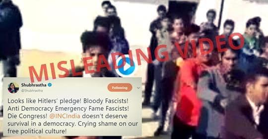 भाजपा समर्थक शुभ्रास्था ने इस वीडियो को इस कैप्शन के साथ रीट्वीट किया: “लगता है हिटलर ने शपथ दिलाई है। खूनी फ़ासिस्ट। लोकतंत्र के विरोधी इमरजेंसी के उस्ताद। डूब मरो कांग्रेस!” (अनुवाद) उनके ट्वीट को लगभग 1000 बार लाइक और 500 बार रीट्वीट किया गया है।