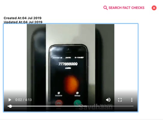 इस प्रकार, कई वीडियो की कुछ क्लिप का उपयोग करके एक 4 मिनट का वीडियो बनाकर गलत दावा के साथ इसे शेयर किया गया है कि ‘777888999’ से कॉल प्राप्त करने पर विस्फोट हो सकता है। हकीकत ये है कि न तो ये नंबर कोई वायरस है और न ही इस नंबर से कॉल आने पर आपके फोन में बलास्ट होगा।