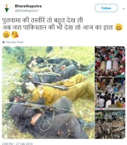 सोशल मीडिया पर वायरल कई तस्वीरों का सेट इस दावे के साथ प्रसारित किया जा रहा है कि ये भारतीय वायुसेना के कारण पाकिस्तानी क्षेत्र में हुए विनाश को दर्शाती हैं। इन वायरल तस्वीरों के लिए यह कैप्शन इस्तेमाल किया गया है, “पुलवामा की तो तस्वीर बहुत देखी जरा आज पाकिस्तान का भी हाल देखो!!!!”