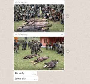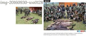 ऊपर वाली तस्वीर आउटलुक में पाई गई, जहां इसका विवरण “हंदवाड़ा के वंदरबल गांव में मुठभेड़ के दौरान मारे गए लश्कर-ए-तैयबा के तीन आतंकवादियों के शव के साथ पोज देते सेना के जवान” के रूप दिया गया था।