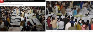 ये दोनों तस्वीरें, चौथी तस्वीर की तरह, एक ही आत्मघाती बम हमले की हैं। इनकी मूल तस्वीरें हमने CNN और Dawn पर पाईं।