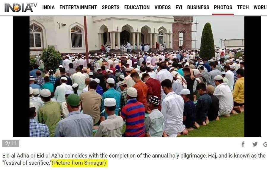अंत में जैसा कि हमने देखा जम्मू की मस्जिद में ईद की नमाज़ अदा करते हुए ली गई तस्वीरों को ANI और इंडिया टीवी ने कश्मीर के श्रीनगर का बताकर प्रसारित किया।