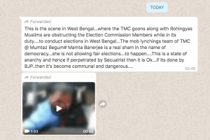 इस वीडियो क्लिप को एक अन्य संदेश,“आतंकवादी की सरदाना ममता बेगम की पुलिस ने केंद्र वाहिनी को भी नहीं छोड़ा, इस वीडियो को इलेक्शन कमिशन के पास पहुंचाना है ज्यादा से ज्यादा शेयर कीजिए” के साथ भी साझा किया जा रहा है।