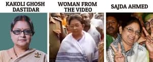 नीचे दिए गए फोटो कॉलाज में स्पष्ट रूप से दिख रहा है कि काकोली घोष वीडियो में दिख रही महिला से अलग दिख रही है। सजदा अहमद और वीडियो में दिख रही महिला भी समान नहीं है। दोनों के चेहरे में नाक के आकर में अंतर है और चश्मे की फ्रेम भी समान नहीं है।