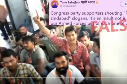 कांग्रेस कार्यकर्ताओं द्वारा ‘पाकिस्तान जिंदाबाद’ के नारे लगाने का झूठा दावा फिर प्रसारित