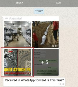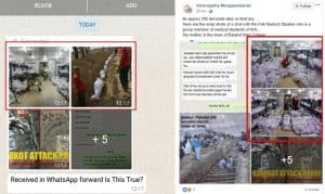 ऑल्ट न्यूज़ को पता चला कि सीमा पार का विध्वंस दिखलाने के लिए, पूर्व में खारिज की जा चुकी तस्वीरें, व्हाट्सएप्प पर व्यापक प्रसारण समेत, सोशल मीडिया में फिर से सामने आ गई हैं। दावों के समर्थन में नकली व्हाट्सएप्प चैट की सहायता ली जा रही है, जिसे ऑल्ट न्यूज़ की तथ्य-जांच के बाद खुद इसके रचनाकार ने हटा लिया था (आर्काइव)।