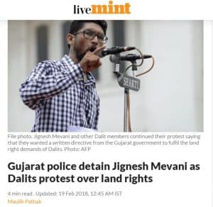 पिछले साल फरवरी में, एक प्रमुख दलित कार्यकर्ता भानुभाई वणकर की आत्महत्या से उपजे दलित विरोध-प्रदर्शन में मेवाणी शामिल थे। भूमि अधिकारों को लेकर हुए इस विरोध-प्रदर्शन के कारण राज्य पुलिस द्वारा स्वतंत्र विधायक को हिरासत में लिया गया था। वायरल तस्वीर इसी घटना से संबंधित है।