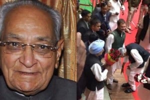 यह तस्वीर कांग्रेस के अभी के समय के गुलामी को दर्शाता है। आने वाले/अंतरिम कांग्रेस अध्यक्ष (मोतीलाल वोरा-90 वर्ष) श्रद्धा में राजकुमार के सामने झुक जाते हैं। उम्र और संस्कृति का कोई लिहाज नहीं है। बहुत ही घृणित।” – (अनुवाद)