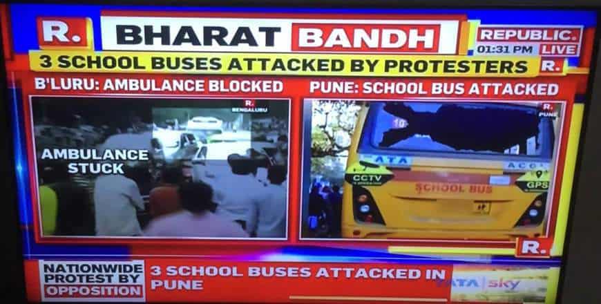 संस्कृति स्कूल की क्षतिग्रस्त बस की तस्वीरों का इस्तेमाल इंडिया टुडे और रिपब्लिक टीवी द्वारा भी किया गया था, जिन्होंने दावा किया था कि यह भारत बंद का परिणाम था।