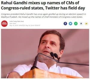 इंडिया टुडे मीडिया संगठन द्वारा इस घटना को गलत तरीके से प्रस्तुत किया गया। उन्होंने बताया कि राहुल गांधी ने कांग्रेस शासित राज्यों के मुख्यमंत्रियों के नाम में बड़ी गड़बड़ी की है। उनकी वेबसाइट पर प्रकाशित किये गए एक लेख का शीर्षक है,“राहुल गांधी ने कांग्रेस शासित राज्यों के मुख्यमंत्री के नाम में की गड़बड़ी, ट्वीटर पर यह मुद्दा छाया रहा।” -(अनुवाद) चैनल ने इसके बारे में ट्वीट भी किया था जो बाद में डिलीट कर दिया गया।