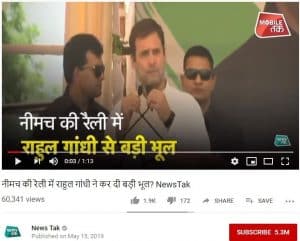 इंडिया टुडे की डिजिटल चैनल न्यूज़ तक ने, 15 मई को रिपोर्ट किया कि राहुल गांधी ने नीमच, मध्यप्रदेश की रैली में एक बड़ी गलती की है। उन्होंने वीडियो रिपोर्ट के साथ शीर्षक के तौर पर लिखा कि,“राहुल गांधी द्वारा नीमच के भाषण में भारी भूल”। पूरी रिपोर्ट इन्ही शब्दों के साथ की गई कि,“भूपेश बघेल को मध्यप्रदेश का मुख्यमंत्री कहा गया” और “हुकुम सिंह खराडे को छत्तीसगढ़ का मुख्यमंत्री कहा गया”।