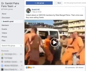 एक यूज़र द्वारा 7 मई को यह वीडियो पोस्ट किए जाने के बाद से, 10,000 से अधिक बार देखा गया था। अब इसे डिलीट कर दिया गया है। कई सोशल मीडिया यूज़र्स ने अपनी टाइमलाइन पर यह वीडियो पोस्ट किया है। इसे WE SUPPORT NARENDRA MODI ग्रुप में भी पोस्ट किया गया है। दावा किया गया है कि पश्चिम बंगाल पुलिस ने कृष्ण भक्तों को गीता की प्रतियां वितरित करने से रोका।