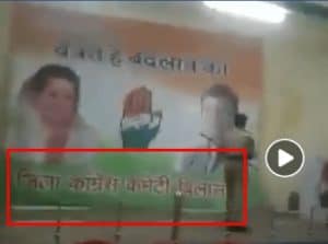 अगर कोई इस विडियो को गौर से देखे तो मंच पर लगे बेनर पर ‘जिला काँग्रेस कमिटी बिलासपुर’ लिखा हुआ है.