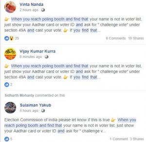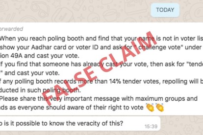 ‘चैलेंज वोट’ एक ऐसे व्यक्ति के वोट को संदर्भित करता है जिसकी पहचान को मतदान एजेंट द्वारा चुनौती दी गई है। इन नियमों की धारा 49जे ‘चैलेंज वोटों’ की प्रक्रिया के बारे में है। यदि मतदान एजेंट द्वारा मतदाता की पहचान पर संदेह व्यक्त किया जाता है, तो उसके वोट को चुनौती दी जा सकती है, और यह मामला पीठासीन अधिकारी के समक्ष उठाया जा सकता है, जो तब जांच करेगा। जिसकी पहचान को चुनौती दी गई हो, उस मतदाता का नाम और पता, फॉर्म 14 में ‘चैलेंज वोटों’ की सूची में रखा जाएगा। वायरल संदेश में जैसा कि दावा किया गया है, धारा 49A में ‘चैलेंज वोट’ का कोई संदर्भ नहीं है।