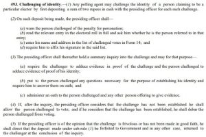 चुनाव संचालन नियम, 1961 की धारा 49पी में कहा गया है कि “किसी अन्य व्यक्ति द्वारा, किसी मतदाता के रूप में मतदान करने के बाद, यदि कोई व्यक्ति खुद, उस खास मतदाता का प्रतिनिधित्व करते हुए, वोट देना चाहता है तो उसे मतदान के लिए एक निविदा मतपत्र प्रदान किया जाएगा, बशर्ते उसने अपनी पहचान से संबंधित सवालों के संतोषजनक जवाब दिए हैं, जो पीठासीन अधिकारी पूछ सकते हैं।”