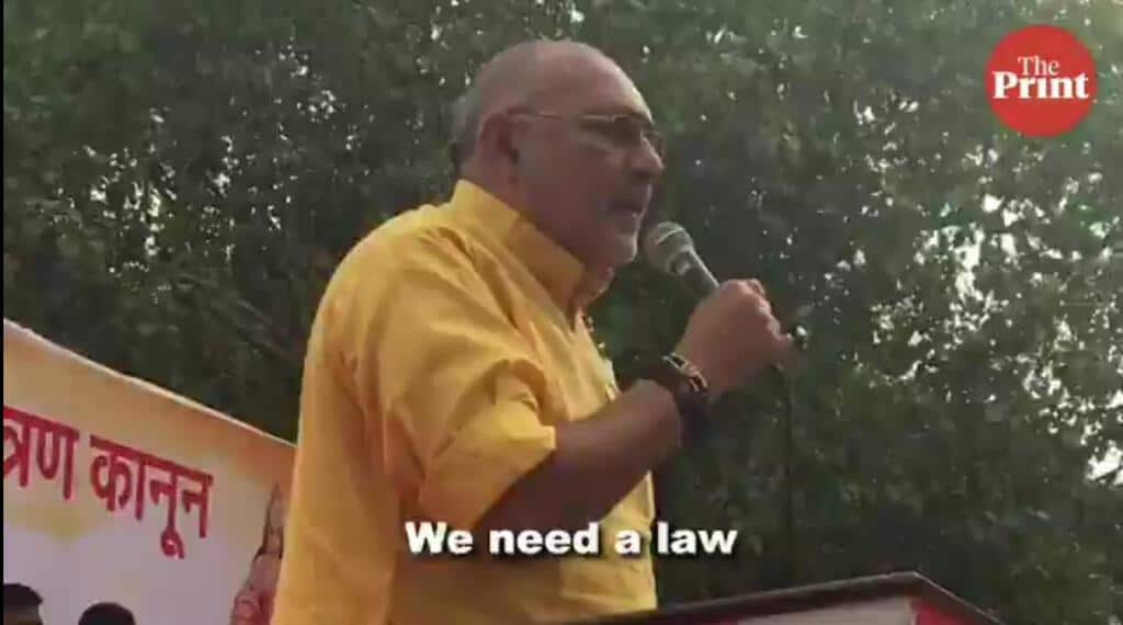 द प्रिंट में शाहबाज अंसार की विडियो रिपोर्ट के मुताबिक गिरिराज सिंह ने जंतर मंतर पर आयोजित सभा में कहा है, “हमें सभी मिलते हैं, बैकवॉर्ड मिलते, फॉरवर्ड मिलते, एससी मिलते, एसटी मिलते लेकिन हिन्दू नहीं मिलते हैं. एक तरफ हिन्दुओं की घटती हुई आबादी है, भारत में बढ़ती हुई आबादी को रोकने के लिए हमें एक कानून बनाना होगा.”