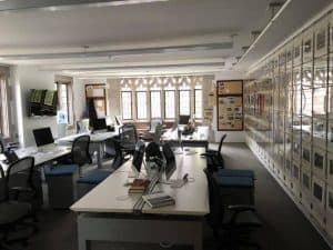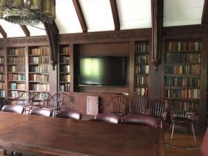 तीसरी तस्वीर ऋंखला में आप देख रहे हैं कि इमारती लकड़ी का कमरा बना है। दीवारों पर किताबें हैं। येल न्यूज़ के पहले चेयरमैन का पोर्ट्रेट हैं। इस अख़बार में काम करने के बाद जब ब्रिटन हेडन यूनिवर्सिटी से निकले तो टाइम मैगज़ीन की स्थापना की। इसी कमरे में संपादक मंडल की बैठक होती है। इस अख़बार में चालीस छात्रों की टीम काम करती है, छात्रों से ही कई रिपोर्टर हैं। संपादक है। एंकर हैं। फ़ोटोग्राफ़र है। अलग-अलग देशों और अलग-अलग विषयों के छात्रों से यह टीम बनी है।