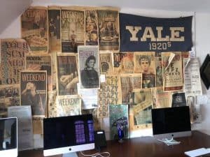 सुरभि ने बताया कि येल न्यूज़ में काम कर चुके पत्रकार अमरीका के कई अख़बारों के संपादक बने। आज भी हैं। पुराने छात्रों के चंदे से इस अख़बार का काम चलता है। पैसे की कोई कमी नहीं है। सुरभि मुझे इस आख़िरी कमरे में ले आई। जब बोर्ड का कार्यकाल पूरा होता है तो इस कमरे की दीवारों पर अपने कार्यकाल के दौरान के सबसे उम्दा संस्करण की कापी यहाँ चिपका जाता है। एक तस्वीर में देखेंगे कि एक लड़की कुर्सी पर खड़ी होकर एक चेहरे पर बर्फ़ पोत रही है। जिसका चेहरा ढँका जा रहा है वो नस्लभेदी था। इसके नाम पर कालेज बना था। हाल में काफ़ी विवाद चला कि नफ़रत की बात करने वाले के नाम पर कॉलेज कैसे हैं। लंबे समय तक येल ने नाम बदलने से मना कर दिया लेकिन बाद में बदल दिया।