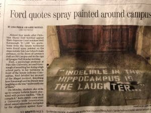 यहाँ तक कि कावानॉव के ख़िलाफ़ गवाही देने वाली प्रोफेसर क्रिश्टीन ब्लेस्सी का बयान छपा है कि हिप्पोक्रेट कैम्पस की न मिटने वाली स्याही उसकी हँसी से झलक रही है। ब्लेस्सी के बयान को येल स्कूल के दरवाज़े पर ही लिख दिया गया है।