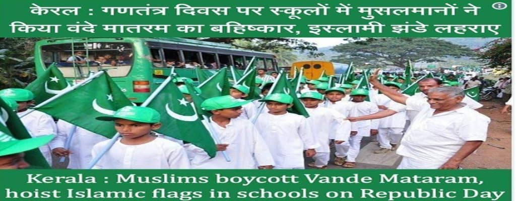 केरल के कुछ स्कूलो में मुसलमानों ने वंदे मातरम् का विरोध करते हुए स्वतंत्रता दिवस पर ईस्लामिक झंडे फहराए!