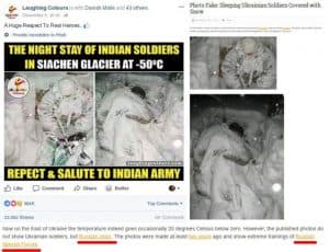 1. यूक्रेन के सैनिकों को सियाचिन में भारतीय सेना के जवानों के रूप में दिखलाया