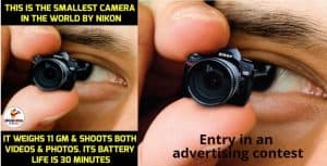 लाफिंग कलर्स के एक पोस्ट में कहा गया यह निकॉन का दुनिया का सबसे छोटा कैमरा है। उम्मीद के अनुरूप यह झूठ निकला क्योंकि यह तस्वीर एक प्रतियोगिता के लिए कलाकार रोबर्ट पी (Robert Pe) की प्रविष्टि थी।