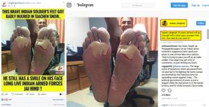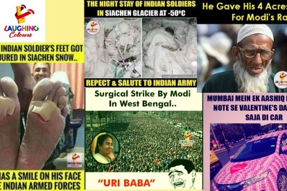 लाफिंग कलर्स ने इस घायल सैनिक की तस्वीर का इस्तेमाल किया। इसने दावा किया कि इस सैनिक के पांव सियाचिन की बर्फ में बुरी तरह जख्मी हो गए, तब भी उसके चेहरे पर मुस्कुराहट है। लेकिन वह तस्वीर एक अमेरीकी नौसैनिक की थी जिसने जुलाई 2016 में अपने इंस्टाग्राम अकाउंट पर अपलोड किया था।