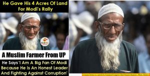 लाफिंग कलर्स ने एक बूढ़े आदमी की यह तस्वीर इस दावे के साथ अपलोड की कि इन्होंने प्रधानमंत्री नरेंद्र मोदी की रैली के लिए यूपी में चार एकड़ जमीन दान कर दी थी। इसमें उस किसान को यह कहते हुए उद्धृत किया गया, “मैं मोदी का बड़ा फैन हूँ क्योंकि वे ईमानदार नेता हैं और भ्रष्टाचार से लड़ रहे हैं”। यह पोस्ट 10,000 से ज्यादा बार शेयर किया गया था। छानबीन में यह सामने आया कि यह खबर सच है कि एक किसान ने मोदी की रैली के लिए जमीन दान की थी, मगर यह तस्वीर उस किसान की नहीं थी, और इसे वास्तव में 2015 में तृणमूल कांग्रेस की रैली में लिया गया था।
