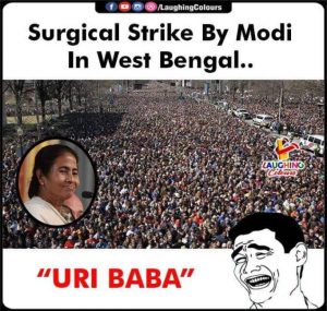 3 करोड़ से भी ज्यादा की फॉलोअर्स वाले एक लोकप्रिय फेसबुक पेज लाफिंग कलर्स (Laughing Colours) ने हाल ही एक तस्वीर पोस्ट की थी। तस्वीर में जबरदस्त भीड़ दिखलाई दे रही थी और इसके साथ का कैप्शन कहता है — “पश्चिम बंगाल में मोदी का सर्जिकल स्ट्राइक”। फरवरी 2019 में प्रधानमंत्री नरेंद्र मोदी की राज्य में राजनीतिक रैलीयां इस पोस्ट का संदर्भ था। पोस्ट को बाद में डिलीट कर दिया गया।