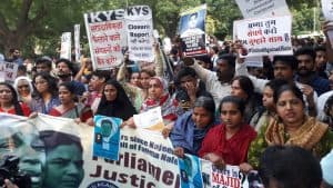 इतना बताकर मोसिन मार्च के साथ चल पड़ा। मार्च जंतर-मंतर पर पहुंचने के बाद लोग स्टेज के सामने बैठ जाते हैं। लोगों के बैठ जाने के बाद एक-एक करके उन पीड़ित माताओं को बोलने के लिए बुलाया जाता है, जिन्होंने अपने बच्चे खोए हैं। सबसे पहले जुनैद की अम्मी अपना दर्द सुनाते हुए बड़ी तल्खी से मोदी सरकार को डांट लगाती हैं। उसके बाद आशियाना को स्टेज पर बुलाया जाता है। डरी हुई आशियाना स्टेज से बताती हैं, “मैं भुज से चलकर पहली बार दिल्ली आई हूँ। जब तक मैं गुजरात में थीं तब तक मुझे ऐसा लग रहा था कि मैं अकेली ही अपने शौहर (पति) के लिए इस सरकार के ख़िलाफ़ लड़ रही हूँ। लेकिन, मैं दिल्ली पहुंची तो मुझे नजीब के बारे में पता लगा और फिर मुझे लगा कि मैं अकेली नहीं हूँ बल्कि और भी माँएं अपने बच्चों के लिए कई सालों से सरकार के खिलाफ़ लड़ रही हैं। जब एक बेटा माँ से अलग कर दिया जाता है या किसी का पति उससे अलग किया जाता है तो उसके दिल पर क्या बीतती है? यह उनके दिल से पूछो। जब वे रात को खाना खाती है तो क्या उनको अपना बेटा याद नहीं आता? क्या उनको उनका पति याद नहीं आता? मैं मोदी जी से पूछना चाहती हूँ, वो तो गुजरात से हैं। आज गुजरात में ऐसा किस्सा हुआ है। कहाँ है वो लोग? क्यों आज माज़िद के बारे में नहीं पूछ रहे? क्यों आज उसे ढूंढकर नहीं ला रहे? पहले तो आप कच्छ में दो बार आते थे। लेकिन, जब से दिल्ली आए हो, एक बार भी वहां के लोगों के बारे में नहीं पूछा है कि वे किस हाल में हैं। मैं गर्भवती हूँ इसलिए उन सभी माओं का दर्द समझ सकती हूँ, जिन्होंने अपने बेटे खोए हैं।