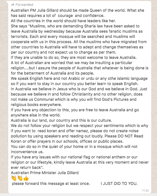 4. गलत सूचना : ऑस्ट्रेलियाई पीएम जूलिया गिलार्ड ने मुसलमानों से देश छोड़ने को कहा