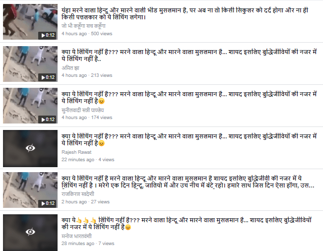 कई सोशल मीडिया यूज़र्स द्वारा शेयर किए गए एक वीडियो के साथ दावा किया गया कि यह मुस्लिम समुदाय के सदस्यों द्वारा एक हिंदू व्यक्ति की हत्या को दिखलाता है। वीडियो के साथ यह संदेश था- “मरने वाला हिन्दू और मारने वाला मुसलमान है… शायद इसलिए बुद्धिजीवियों की नजर में ये लिंचिंग नहीं है”। इसे फेसबुक पर कई व्यक्तियों द्वारा साझा किया गया था।