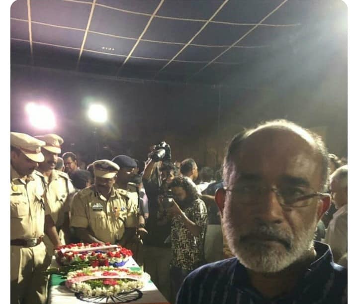 इस दौरान उन्होंने शहीद जवान के ताबूत की तरफ पीठ करके फोटो खिंचाई और ट्विटर पर फ़ोटो अपलोड करते हुए लिखा कि गुड बाय शहीद वसंत कुमार. ‘हम आपकी वजह से हम जिंदा हैं. #CRPFJawans #PulwamaTerrorAttack #KashmirTerrorAttack.’