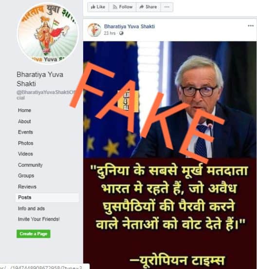 ऐसे ही दावे के साथ फेसबुक पर एक और पोस्ट ‘रोहिंग्या‘ शब्द के साथ फैलाया जा रहा है. ये जताया जा रहा है कि यूरोपियन टाइम्स ने भारत के मतदाता को मूर्ख बताया है, जो अवैध रोहिंग्या घुसपैठियों की पैरवी करने वाले नेताओं को वोट देते हैं.