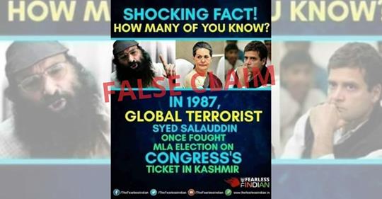 नहीं, आतंकी सैयद सलाहुद्दीन ने 1987 में कांग्रेस के टिकट पर कश्मीर चुनाव नहीं लड़ा था