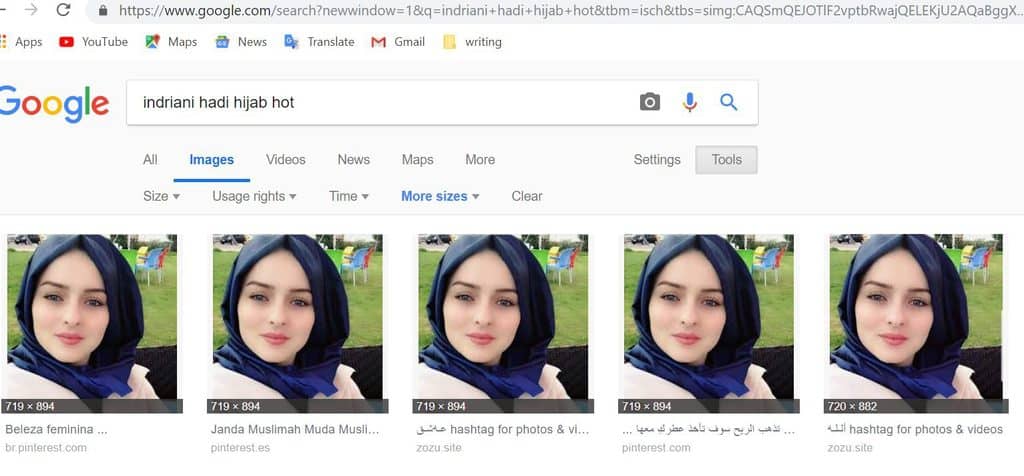 3. नीले रंग का हिजाब पहनी महिला की यह एक सामान्य तस्वीर है और इंटरनेट पर कम से कम सितंबर 2018 से उपलब्ध है।
