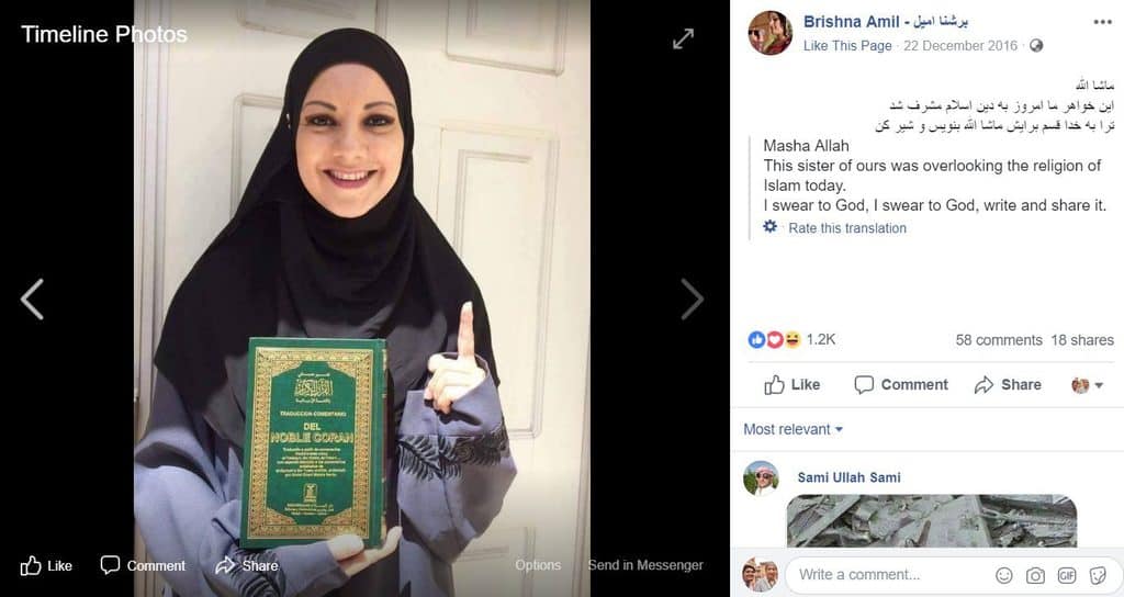 4. हाथ में कुरान पकड़े महिला की यह तस्वीर, फेसबुक पर 22 दिसंबर 2016 को पोस्ट की गई थी।