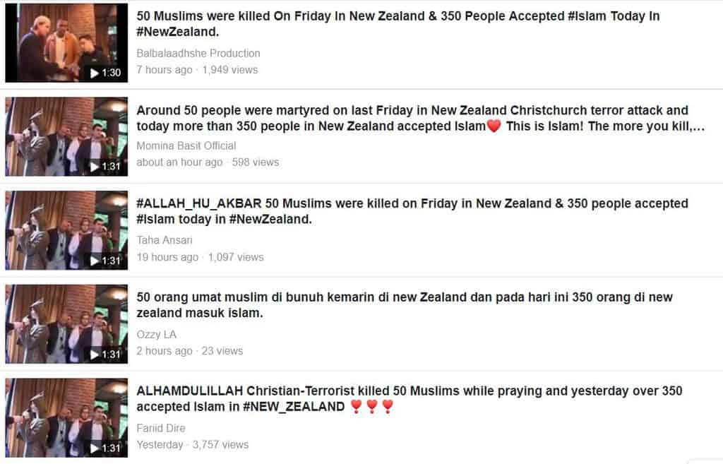 कई दूसरे सोशल मीडिया यूजर्स और पेजों ने यही वीडियो, क्राइस्टचर्च नरसंहार के बाद 350 लोगों के इस्लाम में परिवर्तित होने के दावे के साथ पोस्ट किया है।