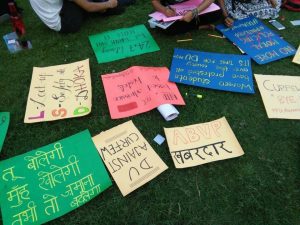 तारीख 8 अक्टूबर, साल 2018। शाम के चार बज रहे हैं। अस्त हो रहा सूरज इमारतों और दरख्तों की बड़ी-बड़ी परछाइयां धरती पर उकेर रहा है। हॉस्टल गेट के आगे पसरी इसी छांव में लड़कियां अपने चार्टों की लड़ी, बैनर और पोस्टर लगा रही हैं। एक-दो के हाथ में डफ़ली और छोटा अंग्रेज़ी बाजा भी है। गेट से बाहर आने वाला लगभग हर शख़्स इन लड़कियों को पराई सी निगाहों से देखकर आगे का रस्ता नापने लगता है। एक नज़र में ऐसा लग रहा है जैसे ये लड़कियां नुक्कड़ नाटक खेलेंगी और लोगों की वाहवाही लूटकर चलती बनेगीं।