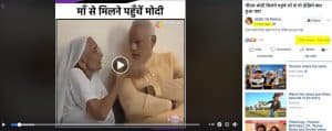 “पीएम मोदी मिलने पहुंचे माँ से तो देखिये क्या हुआ वहां” इन शब्दों के साथ MODI VS RAHUL पेज ने 23 मई की दोपहर लगभग 2.30 बजे एक वीडियो शेयर किया है। इस वीडियो को 5 घंटे से भी कम समय में 1 लाख से ज़्यादा लोगों ने देखा है और 1700 से ज़्यादा लोगों ने शेयर किया है। वीडियो में पीएम मोदी को उनकी माँ के साथ फुर्सत के कुछ पल बिताते हुए देखा जा सकता है।