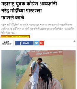 पोस्टर को काला करने वाला आदमी सचिन पायलट नहीं है, और ये तस्वीर हाल ही में हुए विधान सभा चुनाव की भी नहीं है। एक लोकप्रिय मराठी दैनिक अखबार लोकसत्ता में यह तस्वीर 11 अक्टूबर, 2018 के रिपोर्ट में छपी थी। महाराष्ट्र यूथ कांग्रेस के अध्यक्ष सत्यजीत तांबे ने पेट्रोल दाम में बढ़ोतरी के विरोध प्रदर्शन के दौरान प्रधानमंत्री मोदी के पोस्टर को काला किया था। ये विरोध प्रदर्शन मुंबई में हुआ था और इसे महाराष्ट्र यूथ कांग्रेस ने आयोजित किया था।